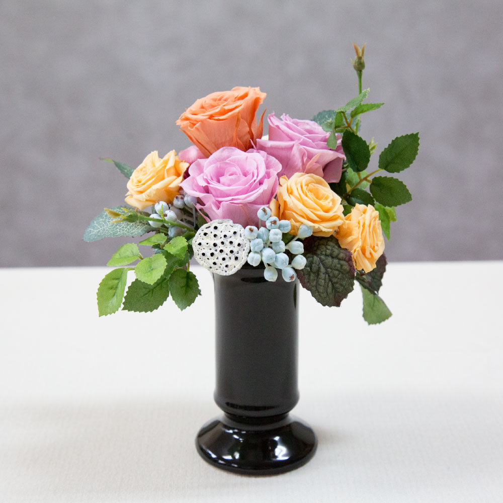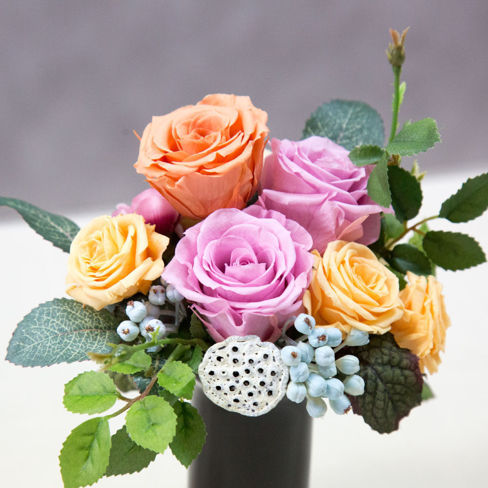 【花材】プリザーブドフラワーで一部造花も施してあります。