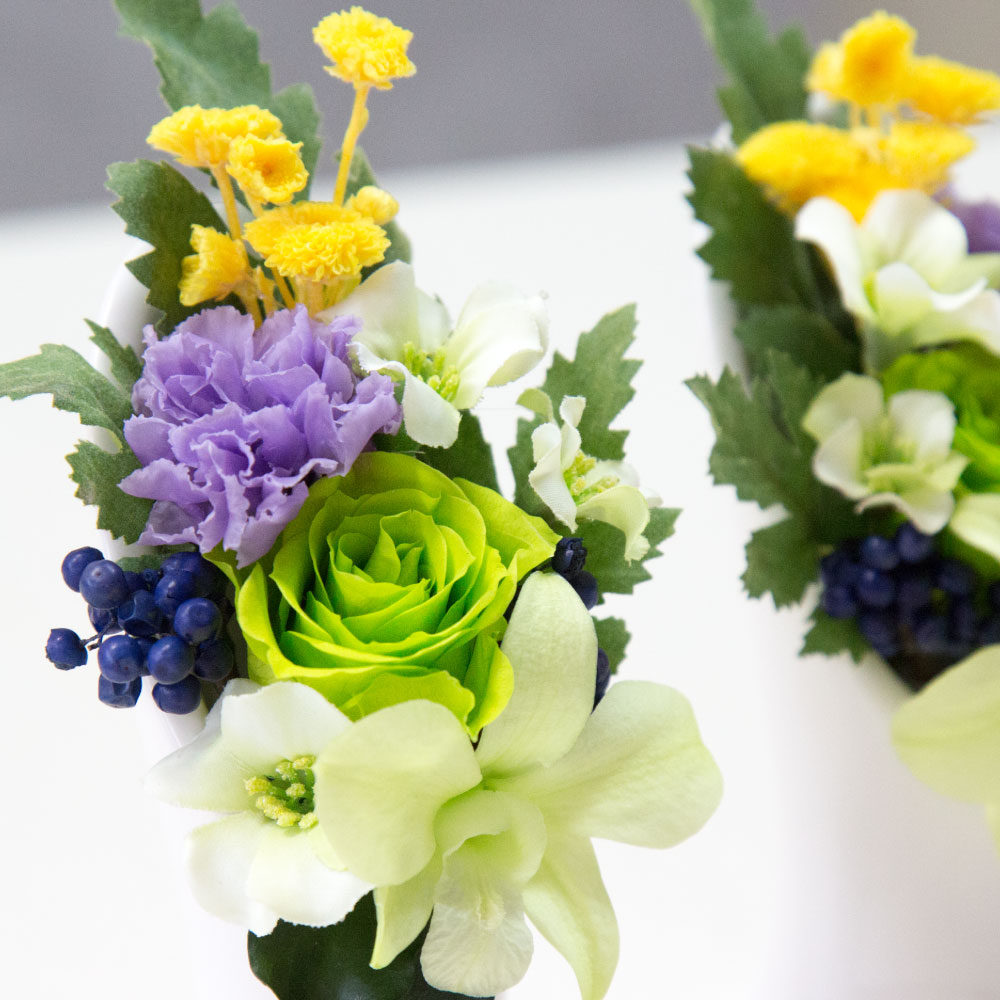 【花材】プリザーブドフラワーで一部造花も施してあります。